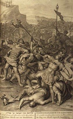 Решающее столкновение израильтян с амалекитянами произошло во времена первого царя Израиля, Саула. Согласно ТАНАХу, война началась в результате божественного повеления Саулу через Шмуэля поразить Амалека и уничтожить его вместе с детьми и скотом (I Сам. 15:3). Шмуэль кратко напомнил царю о повелении, записанном в Торе — уничтожить амалекитян за то, что они сделали евреям при исходе из Египта.