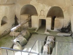 Местный мягкий известняк сделал возможным строительство многочисленных пещер. Из него строили дома, а образовавшиеся пещеры в районе каменоломен использовали для хранения воды, как огромные холодные погреба, для выращивания голубей или для богатых захоронений. На сегодняшний день лишь малая часть многочисленных пещер открыта для посещения туристами.[4]