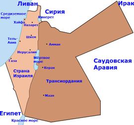 Приблизительные границы Британского мандата в Палестине.