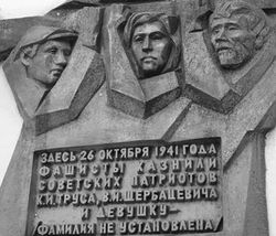| Маша Брускина и её товарищи по пути на казнь, 26 октября 1941 года. | |
