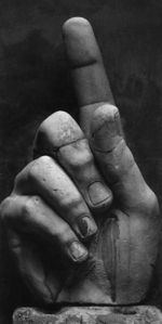 В жестовом языке обозначается отставленным вертикально указательным пальцем (см. справа)