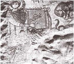 Давид-псалмопевец в виде Орфея, фрагмент мозаичного пола древней синагоги в Газе. Отдел древностей при Министерстве образования и культуры. Иерусалим.