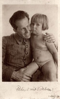Петр Демант на руках у отца, Зигмунда Деманта. 2 августа 1921 года