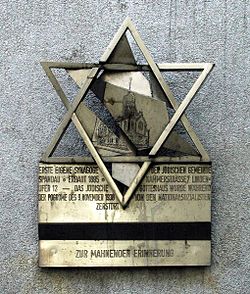 После захвата власти нацистами (1933) началось массовое истребление евреев Берлина (см. Германия). В Хрустальную ночь были уничтожены синагоги, разгромлены еврейские учреждения и предприятия.[5]