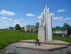 Памятник евреям, погибшим во время оккупации (у входа на еврейское кладбище) в Золочеве. Фото Бориса Мавлютова.