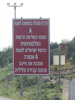 Вход и въезд израильских граждан в зоны А и В опасен для жизни, запрещён гражданской администрацией и является административным преступлением.[1][2]