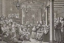 Йом-Кипур в синагоге немецких евреев. Гравюра Б. Пикара, 1723. Jewish Encyclopedia (1901–1906).