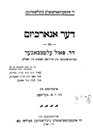 Трактат Пауля Эльцбахера «Анархизм» (перевод на идиш А.Я. Мэрисона)
