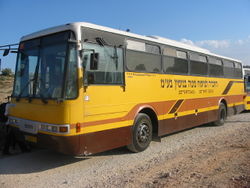 Бронированный муниципальный школьный автобус в районе Мате-Биньямин.