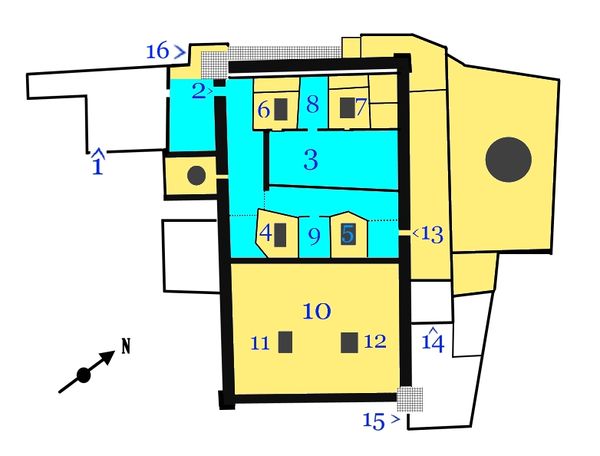 8. Зал Йакова             16. Западный вход