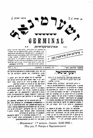 В 1900 – 1909 гг. в Лондоне Рокер издавал анархистский журнал на идише «Жерминаль», в котором публиковал материалы по теории анархизма, а также переводы европейских литературных классиков.