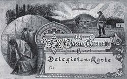 1-й Сионистский конгресс проходил в Базеле (Швейцария) 29–31 августа 1897 г. (первоначально планировалось провести конгресс в Германии, в Мюнхене, однако это оказалось невозможным из-за противодействия ортодоксальной общины города и выступления протестраббинер; см. Сионизм. Исторический обзор. Возникновение сионизма), на нем присутствовали 204 делегата из 17 стран.