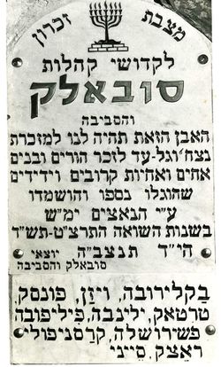 Памятная доска вЯд ва-Шем о евреях Сувалок и соседних мест, убитых нацистами.