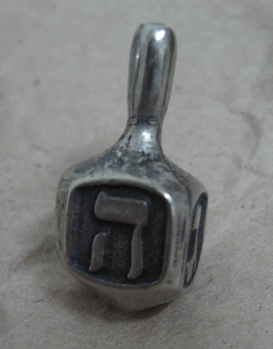 Металлический дрейдл с буквой hей. Я, автор снимка, разрешею его использование на Ежевике.