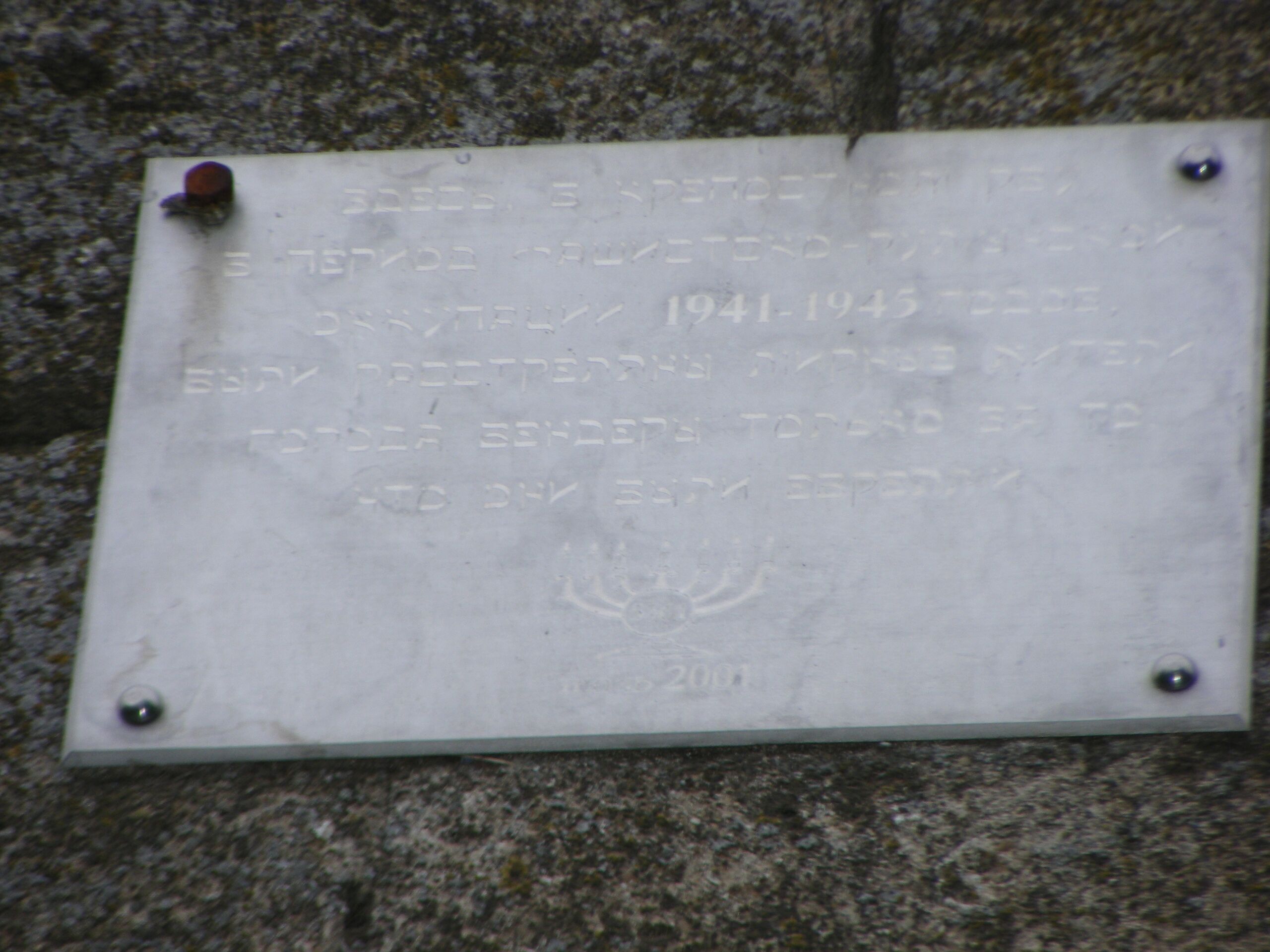 Мемориальная табличка в память о 700 расстрелянных евреях г. Бендеры во время Холокоста
