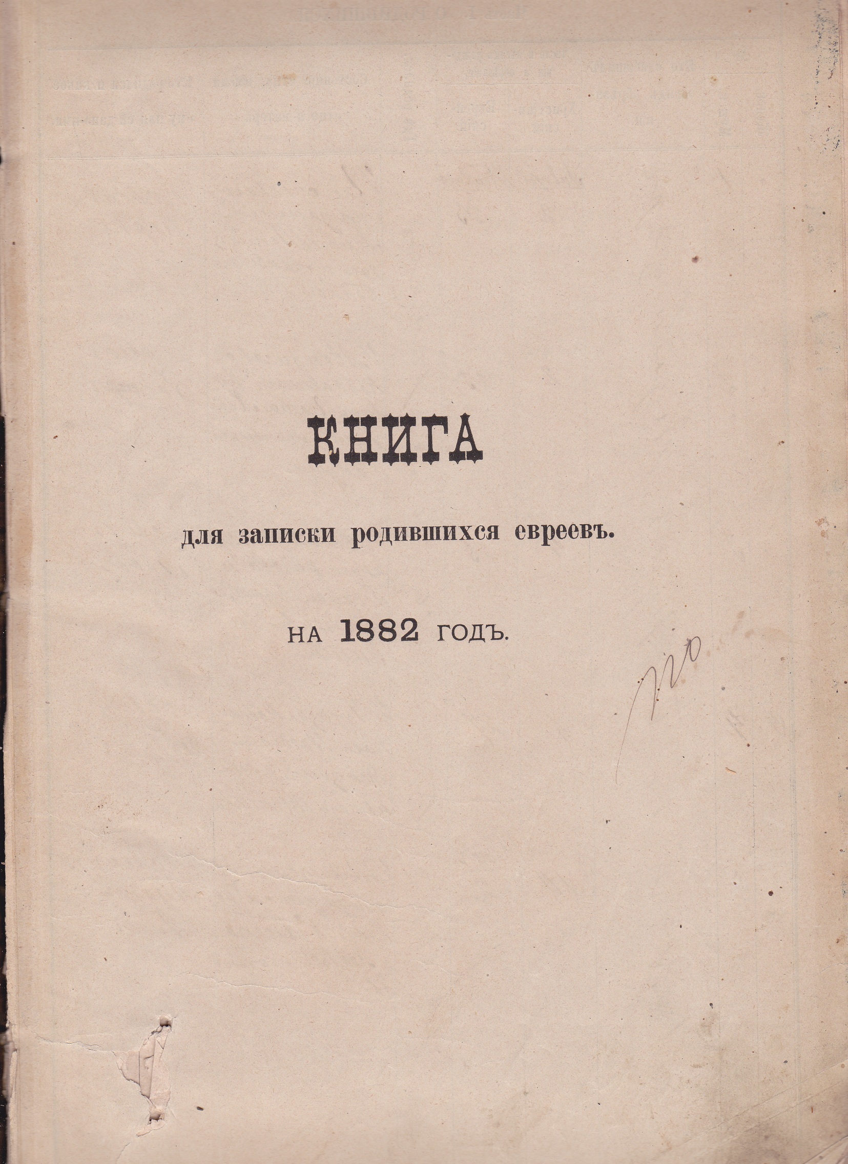 Обложка книги записи родившихся евреев города Бендеры за 1882 год