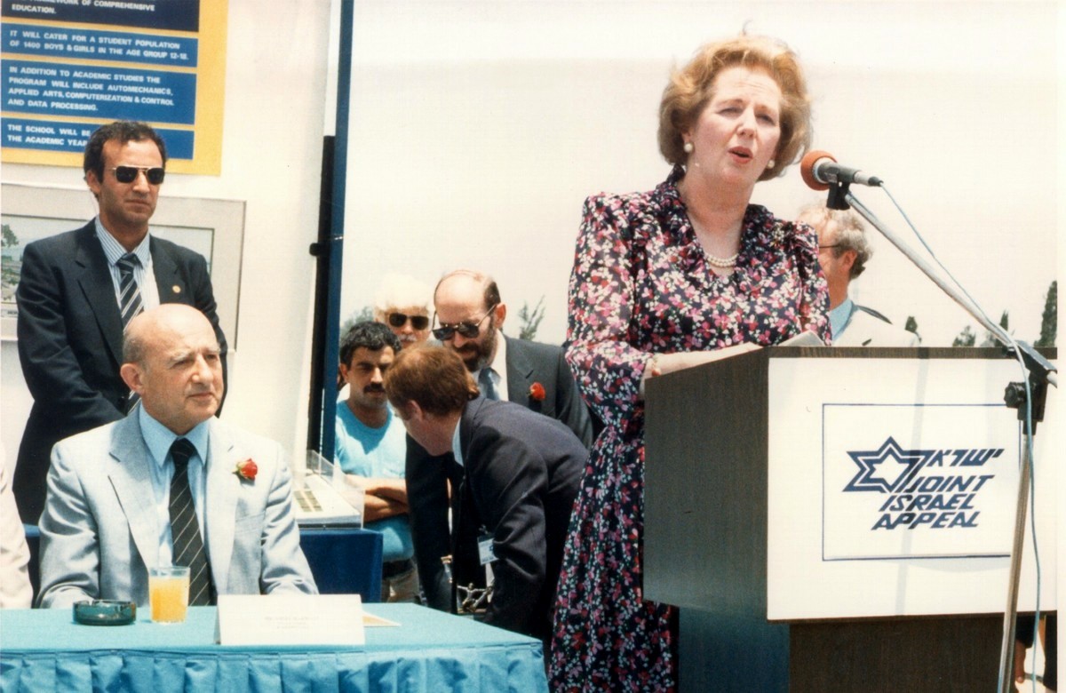 Глава Всемирного ОРТ в 1979–93 гг. Дж. Хармац и премьер-министр Великобритании М. Тэтчер. Израиль, 1987. Фото: World ORT.