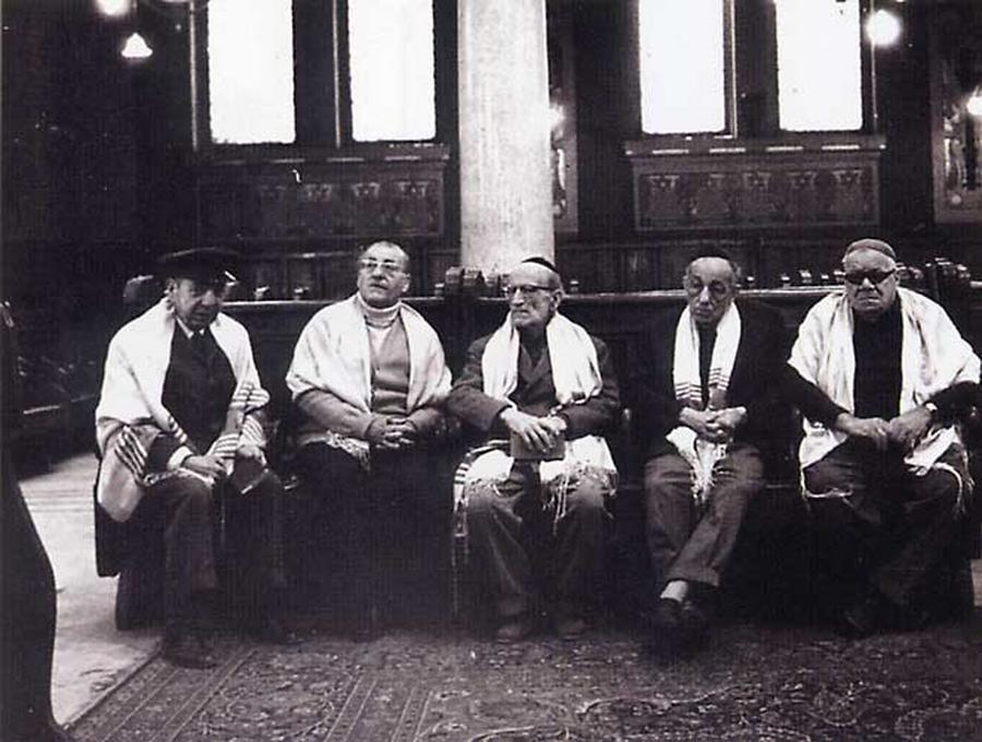 В ожидании миньяна для утренней молитвы в Большой синагоге Каира «Ша‘арей hа-шамаим». 1970-е годы. Из книги М. Наора «Еврейский народ в 20 веке. История в фотографиях», Иер.–Т-А, 2001.