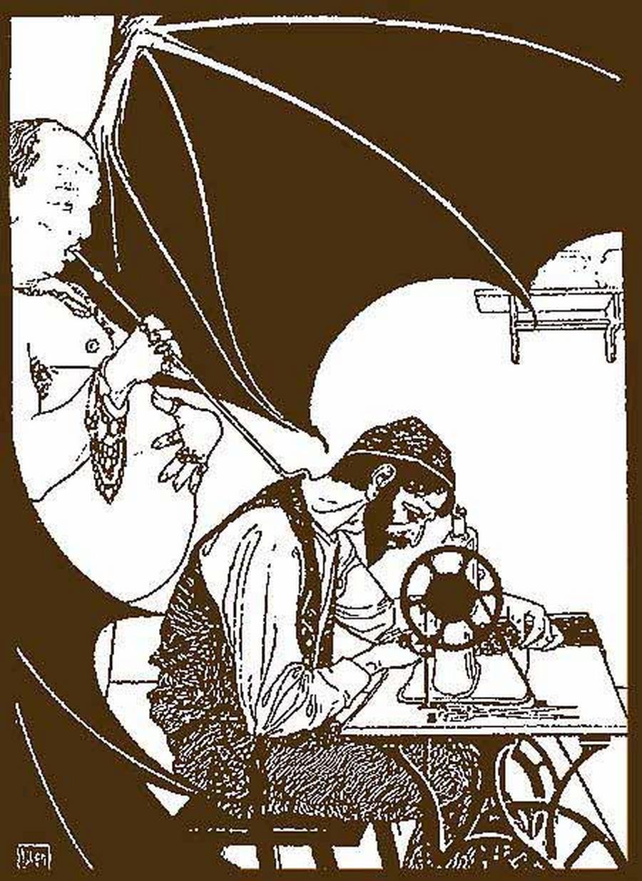 Фабрикант-вампир и его жертва — еврейский портной. США. Карикатура Э. М. Лилиена.