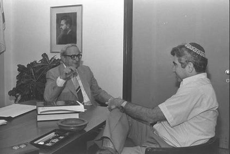 З. Хаммер передает полномочия министра образования И. Навону. 1984 г. Фото Г. Ханании. Государственное бюро печати. Израиль.