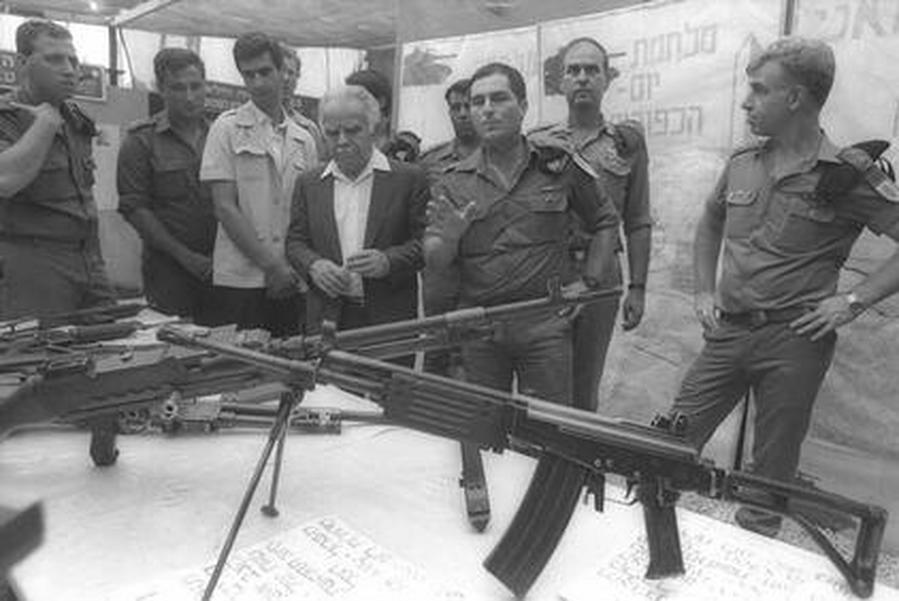 Премьер-министр И. Шамир с группой офицеров на одной из тренировочных баз Армии обороны Израиля. 1987 г. Фото М. Аялон. Государственное бюро печати. Израиль.