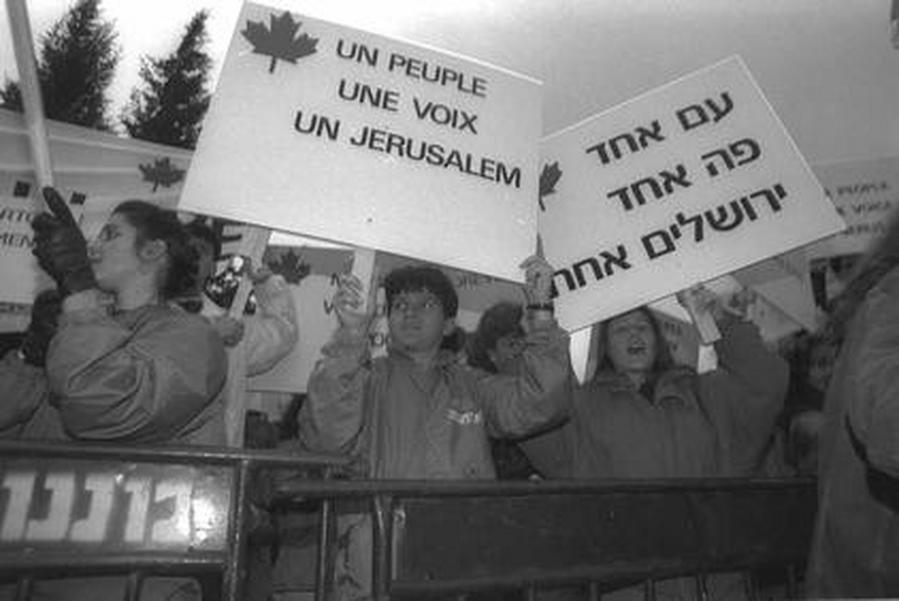 Демонстрация канадских студентов в поддержку Израиля в Иерусалиме. 1990 г. Фото Ц. Исраэли. Государственное бюро печати. Израиль.