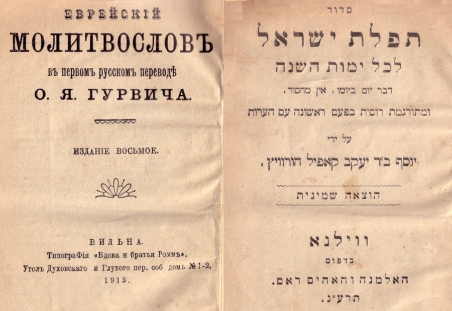 Титульные листы сидура «Тфилат Исраэль» с параллельным русским переводом. Вильна, 1913. [[Category:]]