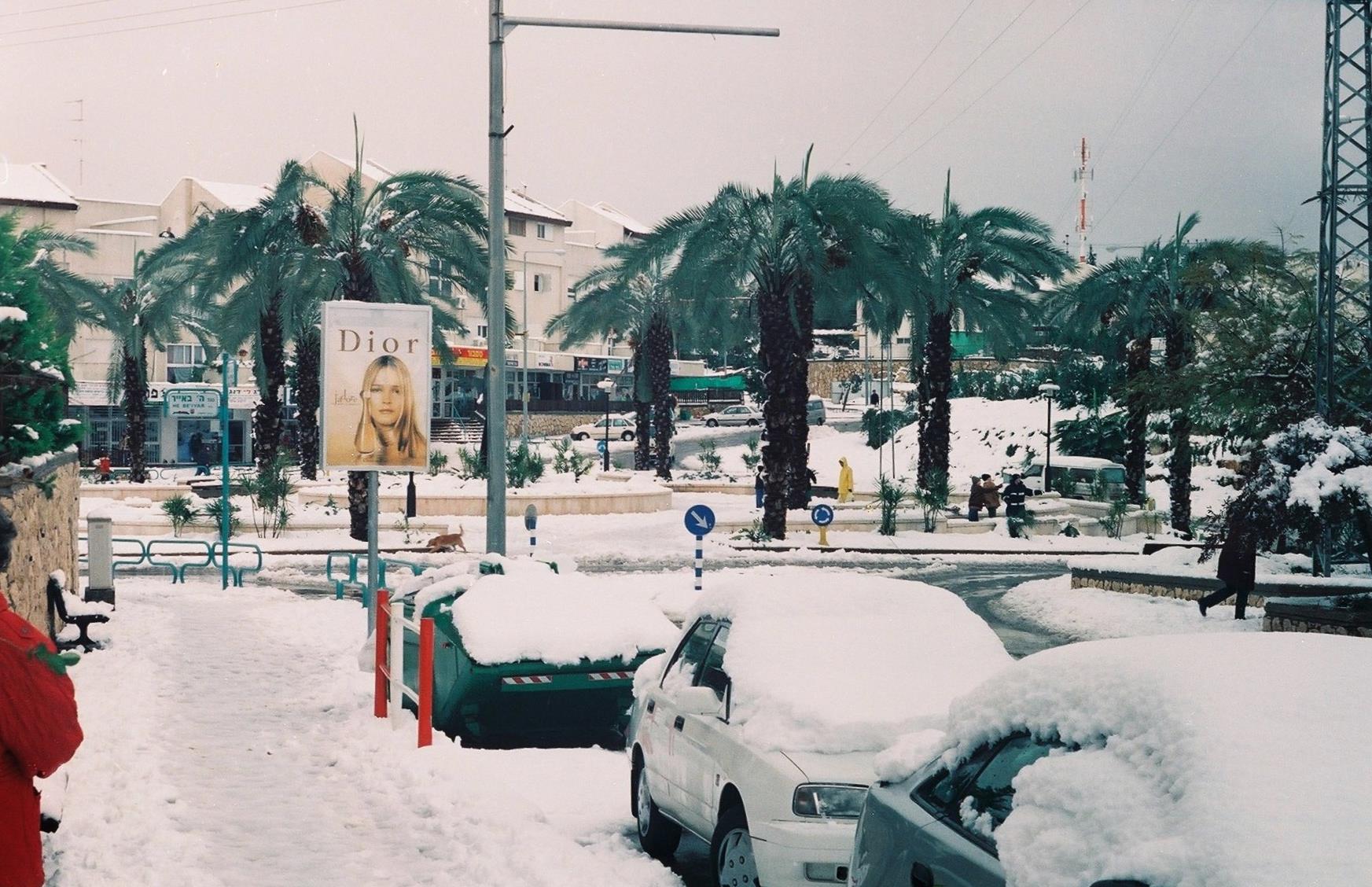 Площадь Ѓей Бээяр в Ариэле зимой 1999 года. Фото Л. Гроервейдла.