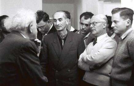 Д. Бен-Гурион (слева) беседует с новыми репатриантами из Румынии. Ашдод. 1959 г. Государственное бюро печати. Израиль.