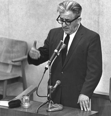 Доктор Давид Вдовинский даёт показания на процессе Эйхмана. Фото с сайта Яд ва-Шем.