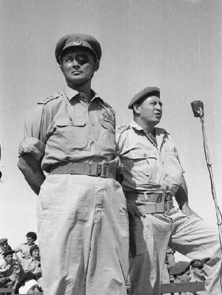 Начальник генштаба Армии обороны Израиля Моше Даян и командир 9-й бригады Авраам Йоффе на параде в Шарм аш-Шейхе 6 ноября 1956 года