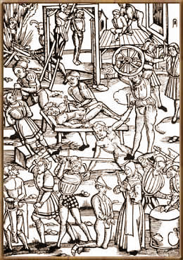 Пытки, применяемые к обвиняемым в ереси. Гравюра 1508 года.