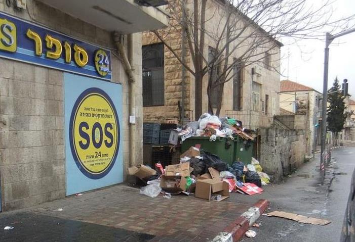 Неубранный мусор в феврале 2012 года в Ииерусалиме во время забастовки муниципальных служащих.