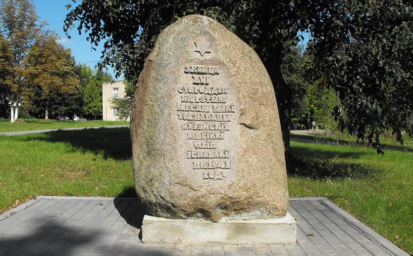 Камень на месте бывшего еврейского кладбища в Лиде. Фото Вадима Акопяна.