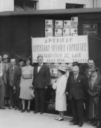 Вэйтстилл и Марта Шарп у вагона с 14 тоннами молочных продуктов, доставленных ими во Францию.