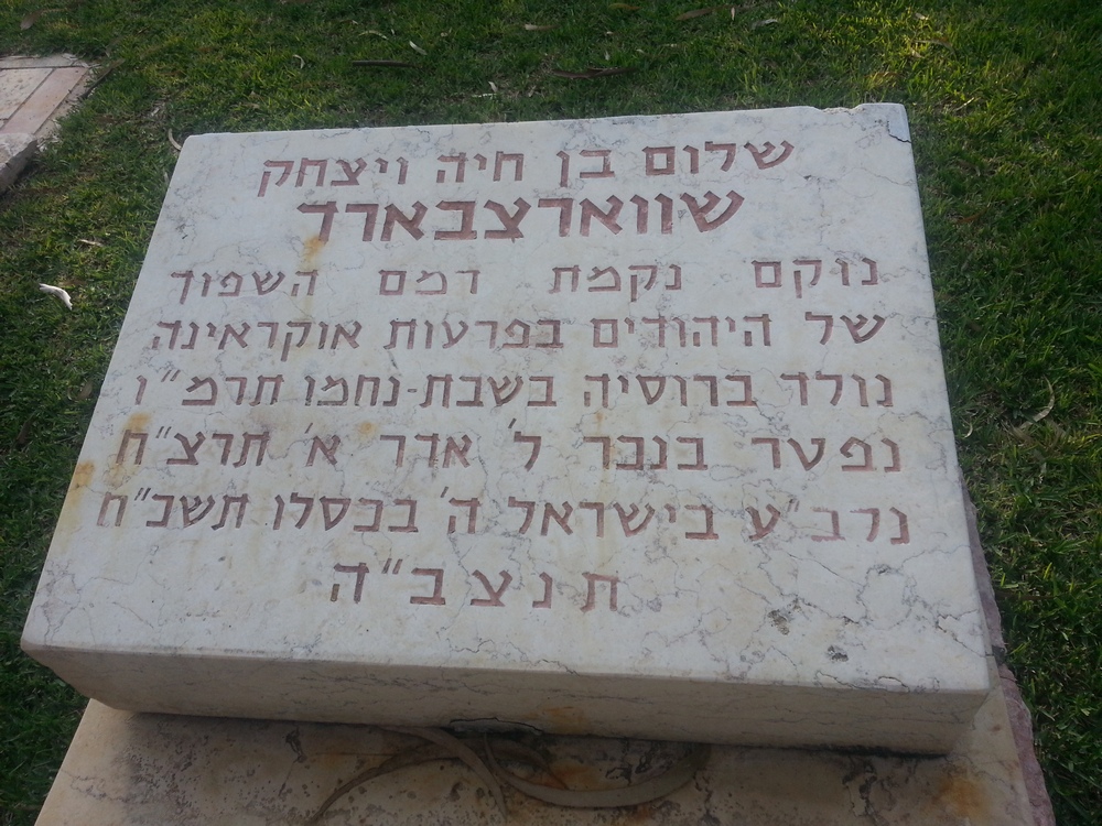 Надгоробие на могиле Шварцбарда на кладбище мошава Авихаиль. Установлено при перезахоронении 07.12. 1967 г.