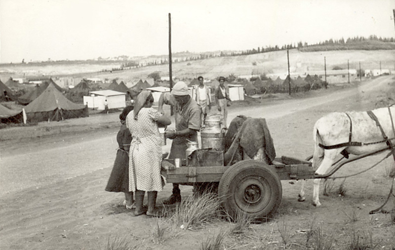 Раздача молока в маабаре Тель-Монд.