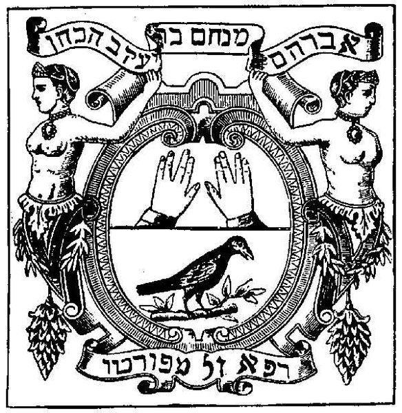 На семейном гербе Рапопорт виден Ворон и руки сложенные для благословения (знак коэнов).
