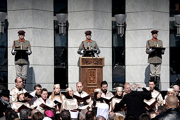 Межрелигиозная церемония переноса урн с прахом евреев Македонии, уничтоженных в Треблинке в рамках открытия нового музея Холокоста в Скопье, Македония.