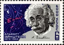 Очень часто на марках изображают основателя современной физики А. Эйнштейна: Аргентина (1971), Канада (1963), Гана (1964), Никарагуа (1971), Парагвай (1965), Польша (1959), США (1966), СССР (1979) и несколько выпусков Израиля.