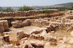В центре верхнего города большой прямоугольный корпус с просторными комнатами на южной стороне, эквивалентный аналогичным корпусам, найденным в царских городах, таких как Самария, Лахиш и Рамат Рахель. На южном склоне, за городом, есть скальные гробницы железного века.