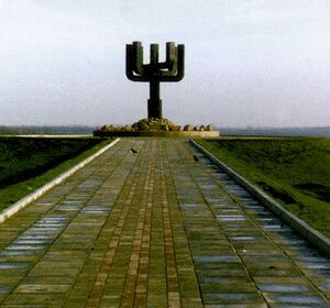 Скульптор: Ильичев А.Н. Архитекторы: Чечельницкий П.Г., Фоменко Н.А. Конструкторы: Герзон Э.А., Гончарук А. Ф. Памятный знак «Менора» в составе мемориального комплекса «Дробицкий Яр» в г. Харькове, Украина.